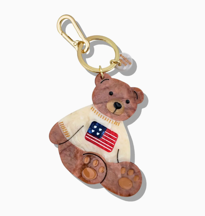 Classic, collegiate, and effortlessly charming—the Americana Teddy Bear brings prep-school polish to your everyday accessories. Dressed in varsity style and hand-painted on both sides, this collectible charm captures the timeless spirit of letterman jackets, Ivy League weekends, and crisp fall days. Crafted from eco-friendly, biodegradable acetate and made in small batches, it’s designed to clip onto your keys, tote, or weekender bag with ease. A nod to all things nostalgic and neatly tailored, it’s the perfect blend of playful and polished. Thoughtfully designed in NYC by our all-female team, the Americana Teddy is a preppy keepsake with a side of personality—because even your keychain deserves a little school spirit.